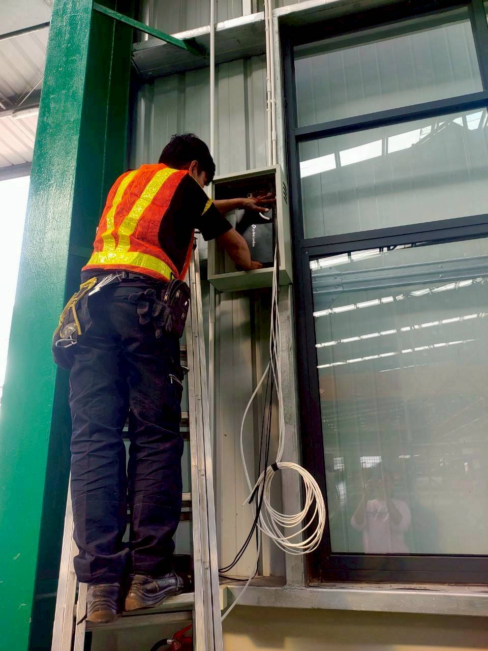 งานระบบกล้องวงจรปิด IP CAMERA ภายในและนอกอาคาร ติดตั้งพร้อมเชื่อมกับระบบเดิมของโรงงาน